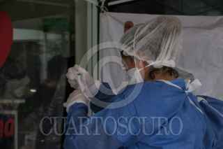 CANCÚN, QUINTANA ROO, 01JULIO2021.- La sospecha de un eventual contagio ha derivado en largas filas para acceder a una una ficha en el módulo de aplicación de pruebas COVID-19 de El Crucero, incluso desde horas antes que se ponga en servicio. Desde hace más de un mes la entidad ha registrado un aumento en los casos positivos, por lo que autoridades han implementado medidas restrictivas en la zona turística a fin de contener el aumento. FOTOS ELIZABETH RUIZ/CUARTOSCURO. COM