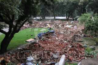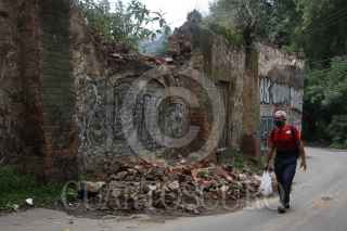 CIUDAD DE MÉXICO 01JULIO2021.- La exhacienda de La Cañada que data del siglo XVIII, incluida en el Catálogo Nacional de Monumentos Histórico por el Instituto Nacional de Antropología e Historia (INAH), resultó afectada en bardas y fachada, esto luego de que se realizara un operativo coordinado por la Secretaría de Seguridad Ciudadana, con el objetivo de desalojar a personas que vivían en el lugar y demoler construcciones irregulares que se encontraban en el interior de la exhacienda, esto en la Alcaldia Magdalena Contreras. Al momento el lugar se encuentra resguardado por personal de la Policía Auxiliar. FOTO: ROGELIO MORALES /CUARTOSCURO.COM