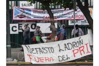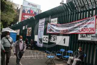 CIUDAD DE MÉXICO 02JULIO2021.- Continua el plantón de militantes del Partido Revolucionario Institucional (PRI) las afueras del Comité Ejecutivo Nacional (CEN) del partido, los inconformes exigen la renuncia de Alejandro Moreno Cárdenas, presidente del partido, por su pésima administración. FOTO: ROGELIO MORALES /CUARTOSCURO.COM