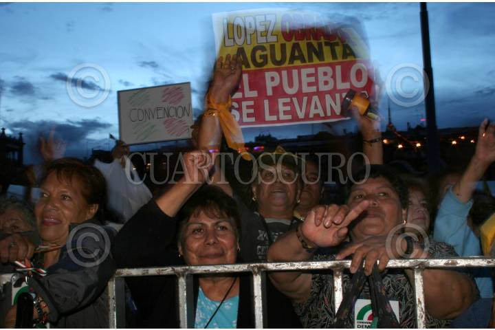 MÉXICO, D.F. 14SEPTIEMBRE2006.- Simpatizantes de López Obrador escuchan las palabras de su lider al hacer el anuncio de que el jefe de gobierno, Alejandro Encinas será quien de el grito de independencia la noche del 15 de septiembre. FOTO: PAOLA HIDALGO/CUARTOSCURO.COM