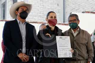 CIUDAD DE MÉXICO, 04JULIO2021.- Claudia Sheinbaum Pardo, jefa de Gobierno de la Ciudad encabezó la entrega del predio donado del ejido Parres El Guarda de la alcaldía Tlalpan a la Secretaria de Seguridad y Protección Ciudadana. asistieron también Pedro Cuellar Villaseñor, inspector General de la Guardia Nacional; José Alfonso Suárez del Real, secretario de Gobierno; Javier Cervantes Chavarria, presidente del Ejido El Guarda. FOTO: GOBIERNO DE LA CIUDAD /CUARTOSCURO.COM