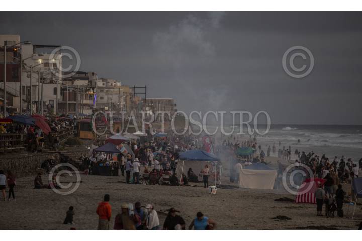 TIJUANA, BAJA CALIFORNIA,04JULIO2021.-Residentes de la ciudad fronteriza acudieron a un costado del muro fronterizo en Playas de Tijuana para observar el espectáculo de fuegos artificiales que son lanzados a kilómetros de distancia en la bahía de San Diego, California, con motivo de la celebración del Día de la Independencia de estadounidense. El malecón lució abarrotado de personas que acudieron a comer, prender vengalas y disfrutar de la tarde con motivo de la festividad estadounidense. FOTO: OMAR MARTÍNEZ /CUARTOSCURO.COM