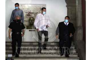 CUERNAVACA, MORELOS, 05JULIO2021.- Conferencia de prensa encabezada por Pablo Ojeda, secretario de Gobierno, acompañado de José Antonio Ortiz Guerneros y el fiscal de Justicia, Uriel Carmona Gándara, sobre el fin de semana violento que registro 11 asesinatos, entre ellos el multihomicidio de 4 hombres la noche de ayer en una cancha de futbol en la colonia Flores Magón, al oriente de la capital. Según las autoridades el recrudecimiento de la violencia se debe a la confrontación entre grupos delincuenciales, y que muchas de la victimas están relacionados con la delincuencia. FOTO: MARGARITO PÉREZ RETANA /CUARTOSCURO.COM