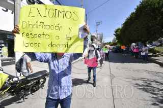 CHILPANCINGO, GUERRERO, 05JULIO2021.- Profesores de las siete regiones de Nivel Básico, sin adscripción a ninguna organización magisterial, marcharon y bloquearon la zona sur de la capital para denunciar irregularidades en el proceso de cambios de centros de trabajo y cumplimiento de su pliego PETITORIO. Los quejosos indicaron que en la convocatoria que emitió la Secretaría de Educación Guerrero (SEG) no está ofertando los espacios que se generaron en Chilpancingo, Acapulco, Tlapa, Iguala o en otras ciudades donde se puede considerar que son espacios preferenciales, únicamente se ofertan los espacios de comunidades rurales de tal forma que sólo cambian de pueblo a otro pueblo, pero en las mismas condiciones de marginación. FOTO: DASAEEV TELLÉZ /CUARTOSCURO.COM