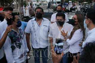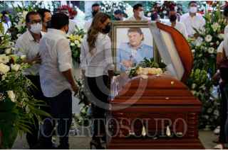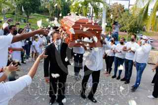 ACAPULCO, GUERRERO, 05JULIO2021.- El cantante y compositor guerrerense José Manuel Zamacona fue velado esta tarde en el Centro Internacional Acapulco. El vocalista y fundador del grupo Los Yonic’s murió, la tarde de ayer, en la Ciudad de México luego de una larga lucha contra el covid-19. En el acto se hicieron presentes el senador Félix Salgado Macedonio y la gobernadora electa Evelyn Salgado Pineda, a quienes apoyo en los últimos meses en sus campañas para la gubernatura de Guerrero. FOTO: CARLOS ALBERTO CARBAJAL/CUARTOSCURO.COM