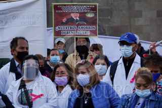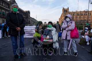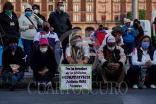 CIUDAD DE MÉXICO, 06JULIO2021.- Jubilados del Instituto Mexicano del Seguro Social (IMSS) bloquearon accesos a Palacio Nacional y se manifestaron en la plancha del Zócalo exigiendo al gobierno federal su intervención para que le sean pagados sus respectivas jubilaciones, ya que el instituto no les ha hecho caso. Portando cubrebocas verdes, integrantes del Jubimss llamaron a que el presidente actual ante estos hechos. FOTO: GALO CAÑAS/CUARTOSCURO.COM