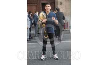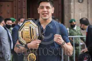 CIUDAD DE MÉXICO. 06JULIO2021.- Brandon Moreno es un peleador mexicano de artes marciales mixtas que actualmente compite en la categoría de peso mosca en Ultimate Fighting Championship, donde es el campeón, se reunió esta mañana con el Presidente Andrés Manuel López Obrador en Palacio Nacional. FOTO: VICTORIA VALTIERRA/CUARTOSCURO.COM