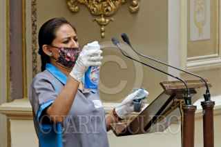 PUEBLA, PUEBLA, 6JULIO2021.- Diputados locales realizan sesión ordinaria de Congreso de manera presencial tras más de un año de llevarse a cabo de forma virtual, debido a la contingencia por Covid-19. FOTO: MIREYA NOVO/CUARTOSCURO.COM