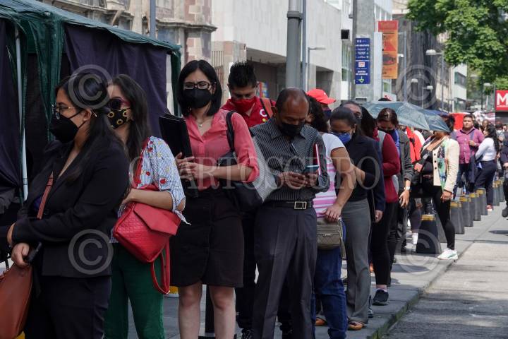CIUDAD DE MÉXICO, 06JULIO2021.- Una kilométrica fila se observó en los Juzgados Familiares de la Ciudad de México sobre Av. Juárez durante el Semáforo Amarillo en la capital del país. FOTO: GALO CAÑAS/CUARTOSCURO.COM