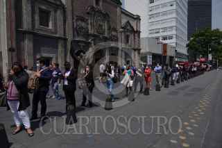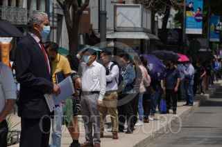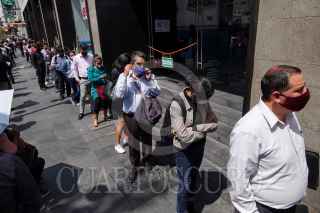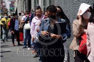 CIUDAD DE MÉXICO, 06JULIO2021.- Una kilométrica fila se observó en los Juzgados Familiares de la Ciudad de México sobre Av. Juárez durante el Semáforo Amarillo en la capital del país. FOTO: GALO CAÑAS/CUARTOSCURO.COM