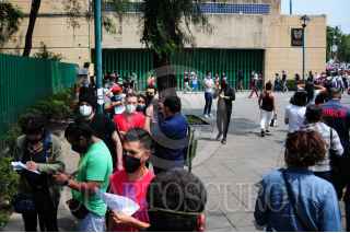 CIUDAD DE MÉXICO, 06JULIO2021.- En el Centro Médico Siglo XXI, que funciona como centro de vacunación contra el Covid-19, decenas de adultos de entre 30 y 39 años, arribaron a las instalaciones de este nosocomio para ser inmunizados contra esta enfermedad, lo que ocasionó que la fila para acceder al centro de vacunación creciera y formará aglomeraciones en el acceso. FOTO: DANIEL AUGUSTO /CUARTOSCURO.COM