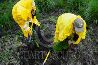 CIUDAD DE MÉXICO, 08JULIO2021.- Como parte de las actividades del Reto Verde 2021, donde se busca reforestar con 10 millones de plantas los distintos suelos de conservación que existen en la capital para abastecer de agua y oxígeno a los capitalinos. En el paraje de La Cima, en la alcaldía Tlalpan, decenas de voluntarios a cargo de la Secretaría de Medio Ambiente de la ciudad, realizan el proceso de reforestación en esta zona de la capital. FOTO: DANIEL AUGUSTO /CUARTOSCURO.COM