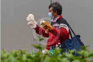 CIUDAD DE MÉXICO, 08JULIO2021.- Un vendedor de títeres camina sobre avenida Cuauhtémoc. FOTO: MARIO JASSO/CUARTOSCURO.COM