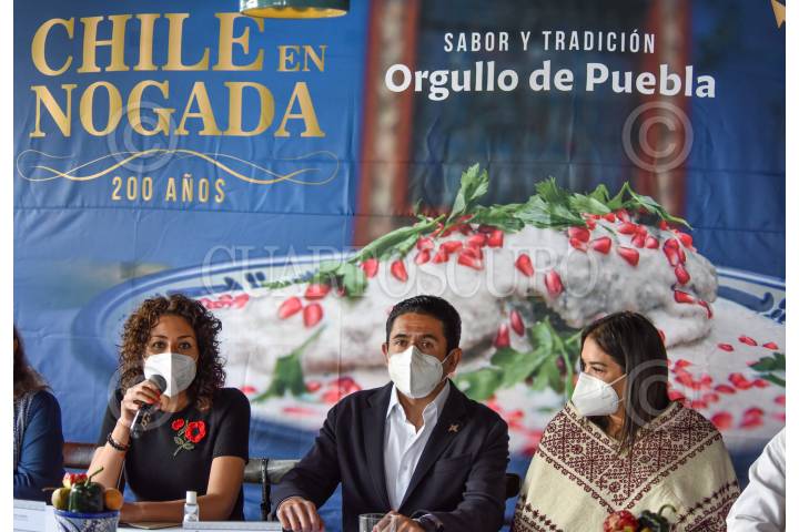 TOLUCA, ESTADO DE MÉXICO, 08JULIO2021.- Como una forma de reactivar el sector restaurantero y turístico se desarrollará en el mes de julio el Festival del Chile en Nogada en el estado de Puebla, como parte de la celebración de los 200 años de la preparación de este platillo, autoridades de Turismo y Cultura en una vista a la ciudad de Toluca se realizó la invitación a las actividades de este festival y generar lazos entre ambas entidades. Los ingredientes con los que se preparan el Chile en Nogada son chile poblano, granada, nuez de Castilla, perejil, picadillo de cerdo, un platillo tradicional de Puebla. FOTO: CRISANTA ESPINOSA AGUILAR /CUARTOSCURO.COM