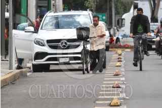 CIUDAD DE MÉXICO 08JULIO2021.- La ciclovía emergente que se colocó hace más de un año en la Avenida de los Insurgentes, como una alternativa de movilidad para los capitanías la ante la pandemia por COVID-19 será permanente, así lo informó, la Secretaría de Movilidad de la Ciudad, así mismo dio a conocer que en próximos días comenzarán los trabajos de su instalación completa y segura. FOTO: ROGELIO MORALES /CUARTOSCURO.COM