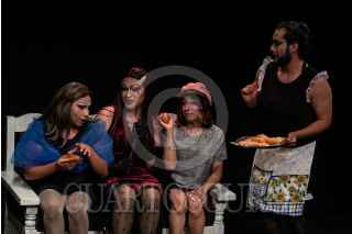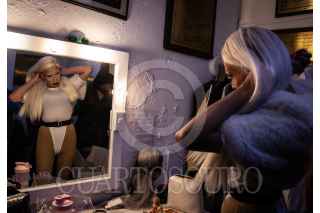 CIUDAD DE MÉXICO, 08JULIO2021.- Durante semáforo epidemiológico rojo y naranja los teatros permanecieron cerrados en la Ciudad. Esto significaron meses con la cartelera suspendida y personal del gremio teatral despedido o sin empleo. Con la baja de ocupación hospitalaria y con ello el cambio a semáforo amarillo se comenzaron a reabrir los espacios pero con horario y aforo reducidos. Basado en “Huit Femmes” de Juan Manuel Takane, 7 mujeres es una obra de teatro Drag que desarrolla la trama a partir del asesinato de un hombre dueño de un burdel que vive en una casa con 7 mujeres, todas con alguna razón para asesinarlo, entre ellas tienen que descubrir quien fue la asesina. FOTO: ANDREA MURCIA /CUARTOSCURO.COM