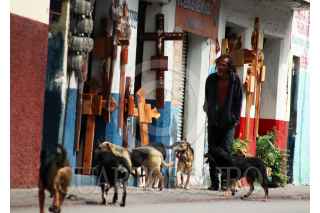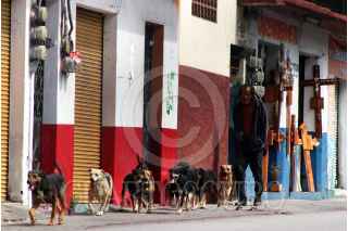 CUERNAVACA, MORELOS, 09JULIO2021.- Un hombre de vida errante y sin oficio camina por la avenida Álvaro Obregón en la colonia Carolina con una decena de perros. FOTO: MARGARITO PÉREZ RETANA / CUARTOSCURO.COM