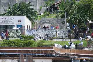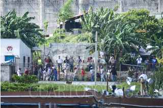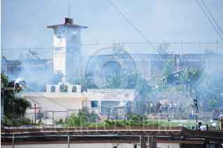 CAMPECHE, CAMPECHE, 09JULIO2021.- Un segundo motín en tan sólo una semana se registró en el Centro Penitenciario de San Francisco Koben en Campeche, donde se reportaron tiroteos dentro del penal, dejando varios internos lesionados, cinco custodios heridos, y extra oficialmente un reo muerto. Desde temprana hora un grupo de reos se amotinó quemando varias cosas como protesta a la falta de alimentos y las restricciones de las visitas, en el interior se escucharon detonaciones de arma de fuego, por lo que el grupo de antimotines de la Policía Estatal Preventiva trataban de tranquilizar los disturbios y de tomar el control. En el lugar llegaron elementos de la Guardia Nacional quienes blindaron los alrededores del centro penitenciario. Desde el exterior se notaba el humo dentro del cereso, por lo que los internos se amotinaron en el área del patio donde colocaron mantas en el cual se leía “solicitamos destitución de la directora Claudia Góngora Rosado”, “Queremos al gobernador para llegar a un arreglo “, “Queremos la destitución de los K2””Queremos la intervención de la Sra. Gobernadora ante actos violentos y represalias en contra de los internos”. En entrevista a la subsecretaria de Seguridad Publica Rosa María Palacios Suarez negó el fallecimiento de alguna persona dentro del penal, por lo que confirmó solo cinco custodios lesionados, Y dijo que se mantiene el dialogo con los internos y con familiares a los que les solicitó mantener la calma. Aunque extraoficialmente se informó del fallecimiento de un interno, tratándose de un joven de 22 años quien recibió un balazo durante la protesta dentro del interior del penal. Hasta el momento aún no hay tregua entre los reos por lo que el lugar se encuentra blindado por antimotines de la Policía Estatal Preventiva y elementos de la Guardia Nacional. FOTO: MICHAEL BALAM/CUARTOSCURO.COM