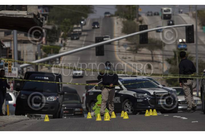 TIJUANA, BAJA CALIFORNIA,09JULIO2021.- Dos hombres fueron agredidos con arma de fuego esta tarde en el bulevar Josefa Ortiz de Domínguez a la altura de la plaza Abedules en la colonia Florido. Paramédicos de la Cruz Roja acudieron al lugar para brindar los primeros auxilios y trasladaron a los lesionados a diferentes hospitales de la ciudad fronteriza. Sobre la vialidad quedaron doce casquillos percutidos que detonó la arma de los agresores. Agentes periciales llegaron al lugar para iniciar con la investigación. FOTO: OMAR MARTÍNEZ /CUARTOSCURO.COM