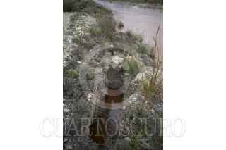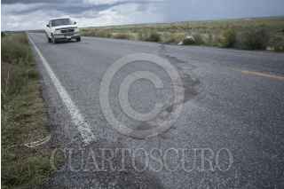 FRESNILLO, ZACATECAS, 09JULIO2021.- En los límites de las comunidades Santa Ana y Orilla del Llano, en días pasado se registró una grieta a un costado de la carretera, la tierra se dividió con una longitud de 150 metros y una profundidad de entre 50 centímetros y un metro y medio. Hasta el momento se desconoce la causa de la zanja, y se descartó un movimiento sísmico. Desde esta mañana la grieta fue tapada totalmente por la cantidad de agua que correr aun costado, después de las lluvias de la noche de ayer. FOTO: ADOLFO VLADIMIR /CUARTOSCURO.COM
