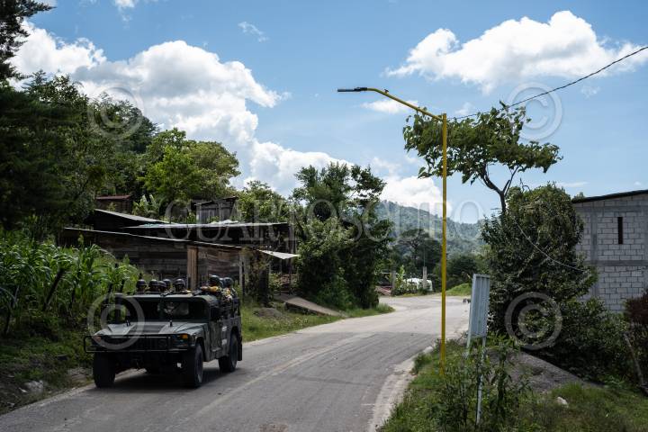 PANTELHO, CHIAPAS, 09JULIO2021.- Más de un centenar de militares permanecen entre los municipios de Pantelhó y Chenalho desde hace tres días, de acuerdo a testimonios de algunos de estos elementos del Ejército Nacional. En el piso se observas cientos de casquillos de alto calibre y una marca de lo que parece el impacto de una bomba. FOTO: ISABEL MATEOS /CUARTOSCURO.COM