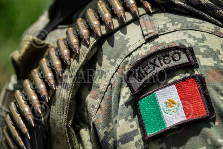 PANTELHO, CHIAPAS, 09JULIO2021.- Más de un centenar de militares permanecen entre los municipios de Pantelhó y Chenalho desde hace tres días, de acuerdo a testimonios de algunos de estos elementos del Ejército Nacional. En el piso se observas cientos de casquillos de alto calibre y una marca de lo que parece el impacto de una bomba. FOTO: ISABEL MATEOS /CUARTOSCURO.COM