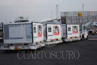 CIUDAD DE MÉXICO, 10JULIO2021.- La mañana de este sábado, arribó al país un embarque con un millón de vacunas envasadas contra COVID-19 del laboratorio Sinovac al Aeropuerto Internacional de la Ciudad de México, con dicho embarque México suma seis millones 46 mil 390 biológicos recibidos esta semana de cuatro diferentes farmacéuticas: Pfizer-BioNTech, Cansino Biologics, AstraZeneca y Sinovac. FOTO: SECRETARÍA DE SALUD /CUARTOSCURO.COM