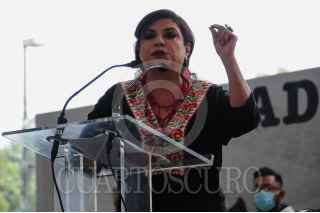 CIUDAD DE MÉXICO, 11JULIO2021.- Clara Brugada, alcaldesa de Iztapalapa, encabezó un mitin en las inmediaciones de la demarcación para mostrar su apoyo a la Consulta Ciudadana para enjuiciar a los últimos 5 ex presidentes mexicanos. La alcaldesa estuvo acompañada por distintos dirigentes sociales quienes pidieron a los habitantes de Iztapalapa que participen el próximo 01 de agosto. FOTO: DANIEL AUGUSTO /CUARTOSCURO.COM