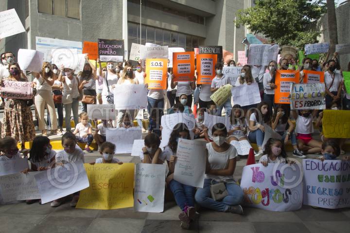 MONTERREY, NUEVO LEÓN, 12JULIO2021.- Padres de familia, niños y maestros de colegios privados en Nuevo León, acudieron al Congreso del Estado, para exigir la apertura a las escuelas, luego que fuera anunciado que el 30 de agosto no sería una fecha probable para las clases presenciales debido al incremento de casos por Covid-19 en el estado. FOTO: GABRIELA PÉREZ MONTIEL / CUARTOSCURO.COM