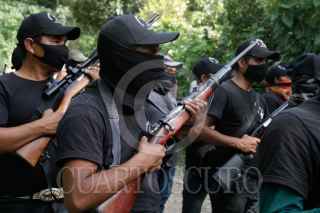 PANTELHÓ, CHIAPAS,12JULIO2021.- El denominado grupo de autodefensas "El Machete" se presentó oficialmente como defensores de los pobladores de la región Pantelhó-Chenalhó en Chiapas, el grupo nació como consecuencia de los ataques de grupos paramilitares y grupos de narcotraficantes "que se han relacionado con algunas autoridades en la región" y que han atacado a la población de este municipio.. FOTO: JUAMBALAM/ESPECIAL/CUARTOSCURO.COM