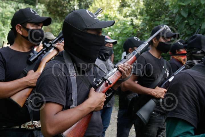 PANTELHÓ, CHIAPAS,12JULIO2021.- El denominado grupo de autodefensas "El Machete" se presentó oficialmente como defensores de los pobladores de la región Pantelhó-Chenalhó en Chiapas, el grupo nació como consecuencia de los ataques de grupos paramilitares y grupos de narcotraficantes "que se han relacionado con algunas autoridades en la región" y que han atacado a la población de este municipio.. FOTO: JUAMBALAM/ESPECIAL/CUARTOSCURO.COM