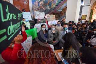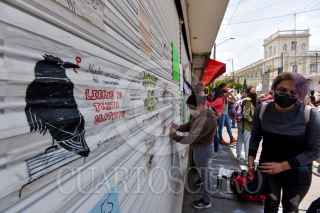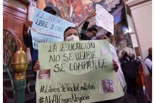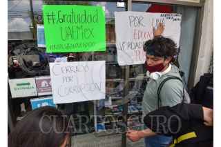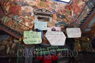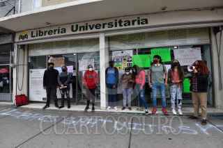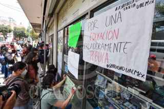 TOLUCA, ESTADO DE MÉXICO, 12JULIO2021.- Integrantes de Asamblea Universitaria entregaron un petición a las autoridades de la Universidad Autónoma del Estado de México (UAEM) para que los libros de texto o antologías que son utilizadas en preparatoria sean gratuitas; posteriormente clausuraron de forma simbólica una de las librerías universitarias que se encuentra muy cerca del edificio de Rectoría. FOTO: CRISANTA ESPINOSA AGUILAR /CUARTOSCURO.COM