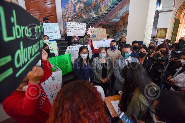 TOLUCA, ESTADO DE MÉXICO, 12JULIO2021.- Integrantes de Asamblea Universitaria entregaron un petición a las autoridades de la Universidad Autónoma del Estado de México (UAEM) para que los libros de texto o antologías que son utilizadas en preparatoria sean gratuitas; posteriormente clausuraron de forma simbólica una de las librerías universitarias que se encuentra muy cerca del edificio de Rectoría. FOTO: CRISANTA ESPINOSA AGUILAR /CUARTOSCURO.COM