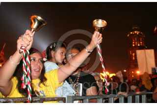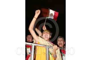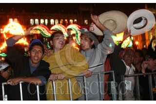 MÉXICO, D.F. 15SEPTIEMBRE2006.- Simpatizantes de López Obrador cantaron el Himno Nacional junto con su lider frente al templete ubicado en la plancha del Zócalo, minutos después de que dicho acto terminara, integrantes del movimiento de resistencia gritaron consignas. FOTO: PAOLA HIDALGO/CUARTOSCURO.COM