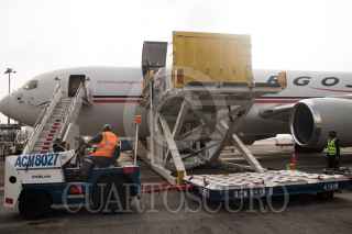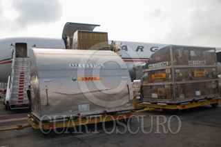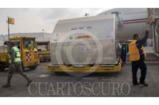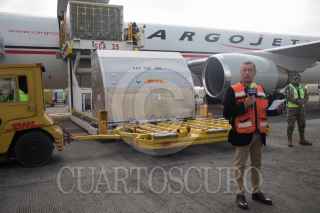 CIUDAD DE MÉXICO. 13JULIO2021.- Arribo de otro lote de vacunas Pfizer, esta mañana en el Aeropuerto Internacional de la Ciudad de México, y el vuelo vino procedente de los Estados Unidos. FOTO: VICTORIA VALTIERRA/CUARTOSCURO.COM