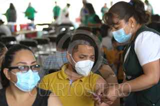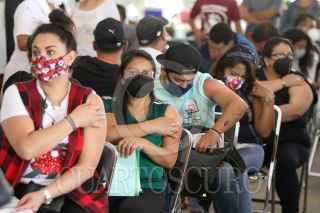 CIUDAD DE MÉXICO, 13JULIO2021.- Capitalinos de 30 a 39 años de edad y personas resagadas de otras edades, acudieron a recibir la primera dosis de la vacuna Astra Zeneca contra Covid-19 en el Telecom, en la alcaldía Iztapalapa. FOTO: GRACIELA LÓPEZ / CUARTOSCURO.COM