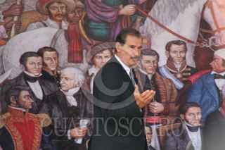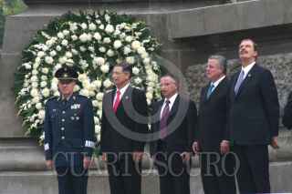 MÉXICO, D.F. 16SEPTIEMBRE2006.- El presidente Vicente Fox a su llegada a la Plaza del Zócalo, así dando inicio al tradicional desfile. En la imagen acompañado de el secretario de Marina, Marco Antonio Peyroy González. FOTO: PAOLA HIDALGO/CUARTOSCURO.COM