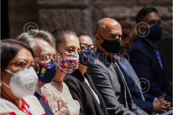 CIUDAD DE MÉXICO, 13JULIO2021.- Claudia Sheinbaum, jefa de gobierno de la Ciudad de México, acompañada de José Alfonso Suárez del Real y Aguilera, secretario de Gobierno, dio a conocer el programa 500 años de Resistencia Indígena México-Tenochtitlan que contará con 63 intervenciones en distintos puntos de la capital a fin de homenajear la memoria histórica. FOTO: GOBIERNO CIUDAD DE MÉXICO/CUARTOSCURO.COM