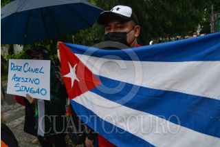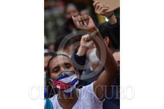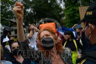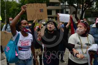 CIUDAD DE MÉXICO, 13JULIO2021.- Cubanos que residen en la capital se manifestaron al exterior de la Embajada cubana bajo las consignas "Patria y Vida" para manifestar para protestar en contra del gobierno de Miguel Díaz-Canel, presidente de Cuba. FOTO: MARIO JASSO/CUARTOSCURO.COM