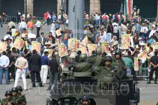MÉXICO, D.F. 16SEPTIEMBRE2006.- Durante el desfile conmemorativo de la gesta de independencia se registraron protestas en contra del presidente Vicente Fox. Simpatizabtes de López Obrador mostraron carteles con la leyenda: Fox traidor. FOTO: PAOLA HIDALGO/CUARTOSCURO.COM