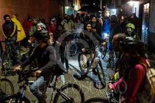 SAN CRISTÓBAL DE LAS CASAS, CHIAPAS, 13JULIO2021.- Amigos y compañeros de Michele Colosio, quien fuera asesinado en su vecindario a causa de cuatro disparos con arma de fuego, de acuerdo con autoridades en un intento de asalto, se dieron cita en lo que fuera su casa, para colocar una bicicleta blanca como homenaje ya que el era ciclista, al finalizar realizaron una rodada a la Plaza de la Paz en el centro de la región para realizar una ofrenda y recordarlo. FOTO: ISABEL MATEOS /CUARTOSCURO.COM
