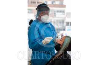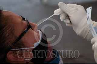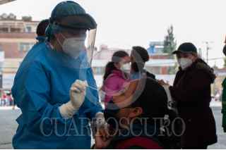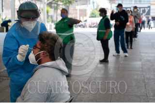 CIUDAD DE MÉXICO,14JULIO2021.- Las cifras en cuanto al aumento de contagios por Covid-19 continúan en aumento en la capital del país, apenas ayer, el número de transmisiones por esta enfermedad habría superado el récord de la primera ola en diciembre pasado, un total de 11 mil 137 personas dieron positivo al virus en las últimas 24 horas. En el Kiosco de la Salud ubicado en la Macro Plaza de Iztapalapa decenas de personas asisten para aplicarse el test de detección de coronavirus. FOTO: DANIEL AUGUSTO /CUARTOSCURO.COM
