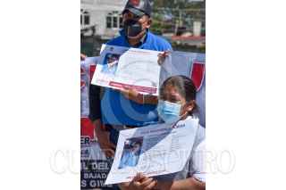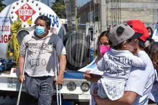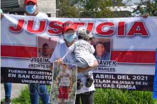 TOLUCA, ESTADO DE MÉXICO, 14JULIO2021.- Familiares y amigos de José Manuel Jacinto de la Cruz y Luis Javier Alonso Marines se manifestaron en la delegación de San Cristobal Huichochitlán, acudiendo al lugar en donde fueron secuestrados el día 24 de abril de este año, cuando trabajan aún a bordo de una pipa de gas, exigen a la FGJEM se de con los culpables así como regresen con vida a sus familiares. FOTO: CRISANTA ESPINOSA AGUILAR /CUARTOSCURO.COM