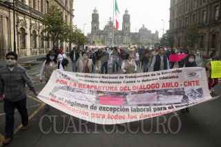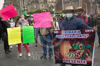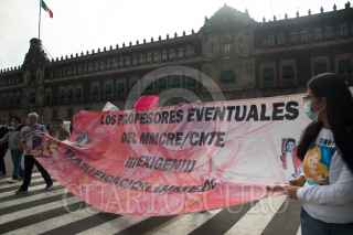 CIUDAD DE MÉXICO. 14JULIO2021.- Maestros de la Coordinadora Nacional del Estado de México realizo una protesta en el Zócalo de la Capital. Demandan basificaciones y pagos a trabajadores eventuales. FOTO: VICTORIA VALTIERRA/CUARTOSCURO.COM