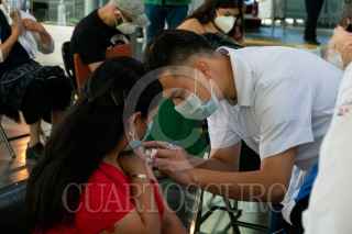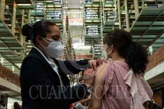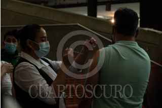 CIUDAD DE MÉXICO, 14JULIO2021.- Adultos jóvenes de 40-49 años se dieron cita en la biblioteca Vasconcelos, alcaldía Cuauhtémoc, para ser inmunizados con la primer dosis de la vacunas Pfizer contra Covid-19. Hasta el momento, se han administrado más de 50 millones de dosis a lo largo del territorio, alcanzado un 16.3% del total de la población al menos con una dosis contra el padecimiento. Sin embargo, los contagios se han disparado en las población de 18-39 años e infantes, sectores faltar por recibir la vacuna. FOTO: GALO CAÑAS/CUARTOSCURO.COM