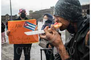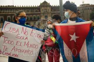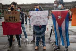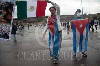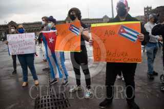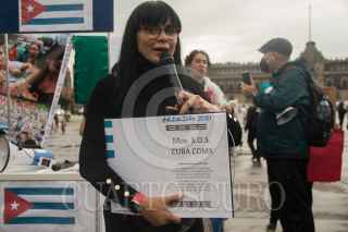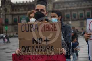 CIUDAD DE MÉXICO. 14JULIO2021.- Cubanos residentes en México, se manifestaron en la plancha del Zócalo. Inician a recabar firmas para enviarlas al país Caribeño y piden ayuda a gente que pasaba por el Centro de la Capital. FOTO: VICTORIA VALTIERRA/CUARTOSCURO.COM
