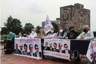 CIUDAD DE MÉXICO 15JULIO2021.- Integrantes del Sindicato de Trabajadores de la Universidad Nacional Autónoma de México y de la Coordinación Nacional Universitaria y Vecinal, realizaron un mitin en donde dieron a conocer las trabas por parte el Instituto Nacional Electoral para aprobar y realizar la consulta popular de juicio a ex presidentes, así mismo resaltaron la importancia de la participación de los ciudadanos, esto en la explanada de la Rectoría de la UNAM en Ciudad Universitaria. FOTO: ROGELIO MORALES /CUARTOSCURO.COM
