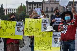 TOLUCA, ESTADO DE MÉXICO, 15JULIO2021.- Habitantes de la zona indígena de Toluca promovieron la consulta popular para enjuiciar a los ex presidentes de México, que se realizará el próximo 1 de agosto, con cartulinas pidieron cárcel para el expresidente Felipe Calderón, en la Plaza de los Mártires. FOTO: CRISANTA ESPINOSA AGUILAR /CUARTOSCURO.COM