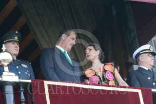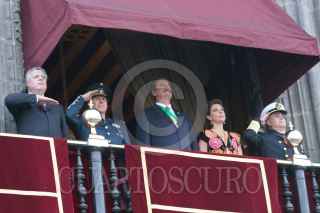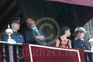 MÉXICO, D.F. 16SEPTIEMBRE2006.- Desde el Balcón presidencial, Vicente Fox, primer mandatario, el secretario de Marina, Marco Antonio Peyroy González, el secretario de la Defensa Ncional, Ricardo Vega García y Martha Sahagún de Fox, presenciando el desarrollo del tradicional desfile. FOTO: PAOLA HIDALGO/CUARTOSCURO.COM