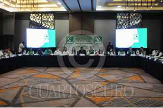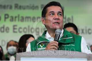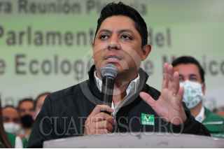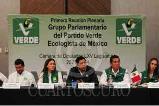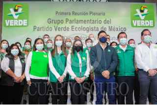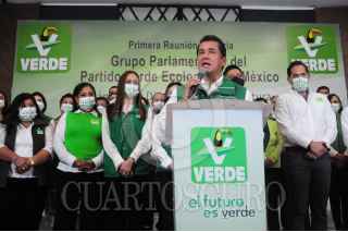 SAN LUIS POTOSÍ, SAN LUIS POTOSÍ, 15JULIO2021.- Con la presencia del gobernador electo de San Luis Potosí, Ricardo Gallardo y la líder nacional del Partido Verde Ecologista de México (PVEM) se llevó a cabo la reunión plenaria de los diputados de dicho partido y se eligió a Carlos Puente Salas como coordinador de la bancada de legisladores ecologistas en la cámara baja para la próxima legislatura. FOTO: DANIEL AUGUSTO /CUARTOSCURO.COM